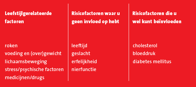 Meer informatie over risicofactoren voor hart- en vaatziekten vindt u bij de Nederlandse Hartstichting.